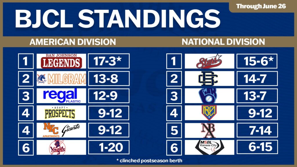 The KC Knights, MSBL Royals and Natural Baseball Academy, which lost the season series against the Raiders, have been eliminated from playoff contention.